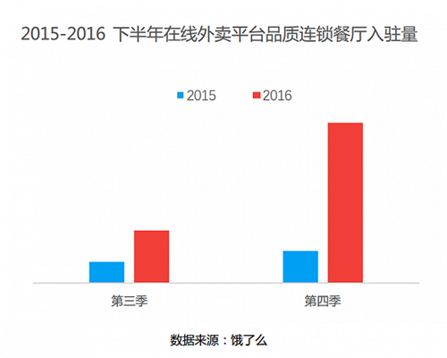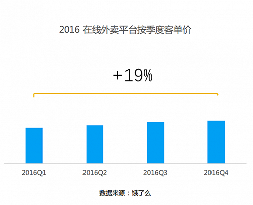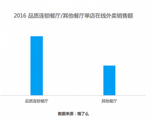 2016年,在線外賣平臺餓了么季度客單價提升19%,與此同時品質連鎖餐廳入駐外賣平臺數(shù)量大幅提升,同時營業(yè)額相比普通餐廳也較高。
