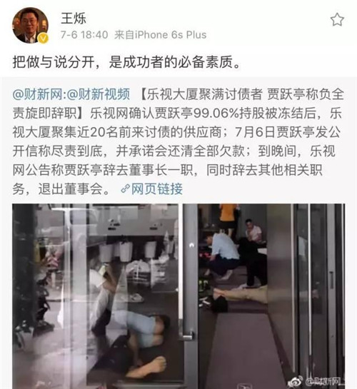 程時(shí)盛在朋友圈中寫到:相信大家因?qū)O正義先生和樂視的緋聞熱鬧了兩個(gè)小時(shí)。我們第一時(shí)間聯(lián)系了“美人獅”賬號(hào)并請(qǐng)其迅速刪除。該作者表示,“看到一個(gè)創(chuàng)業(yè)公司陷入困境,心有戚戚焉,沖動(dòng),想表示下支持”,于是進(jìn)行了“文學(xué)創(chuàng)作”。我們對(duì)作者的“善意”及配合刪除心懷感激。對(duì)于樂視遇到的挑戰(zhàn),賈總承諾會(huì)盡責(zé)到底,把欠款全還上,同時(shí)會(huì)把最好的產(chǎn)品奉獻(xiàn)給大家。感謝在這場(chǎng)驚濤駭浪中,依然堅(jiān)定支持我們的朋友們!