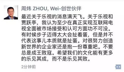 樂視控股傳播副總裁程時(shí)盛又在微信朋友圈發(fā)文對(duì)此事做了進(jìn)一步澄清。