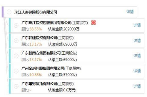 記者查詢獲悉,珠江人壽成立于2012年,由廣東珠江投資控股、廣東金融控股、廣東新南方集團、廣東韓建投資、廣東粵財信托持有。