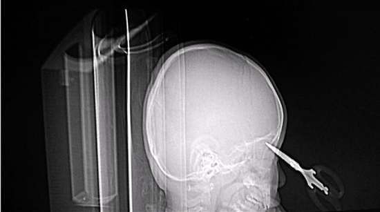 剪刀插進(jìn)了顱骨,形成氣顱