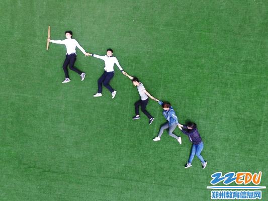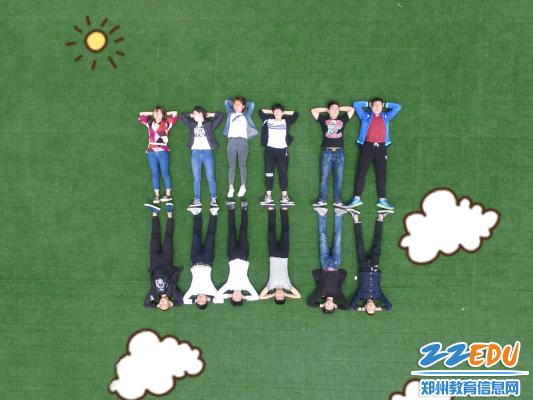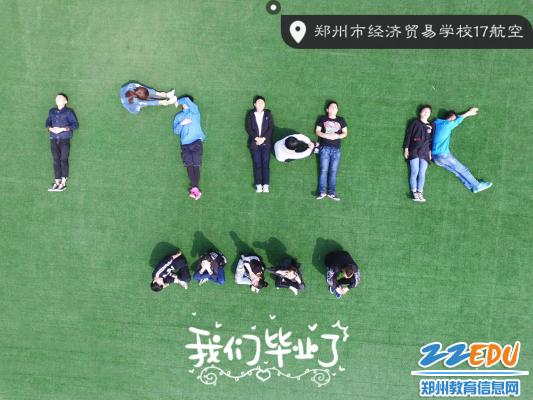 拍攝現(xiàn)場,只見在17屆航空班班長孫昱的指揮下,全體同學(xué)按照先前規(guī)劃好的分組,在地面組成各種樣式的圖案。拍攝現(xiàn)場學(xué)生們熱情洋溢,喜笑顏開。在歡樂的氣氛中,為在鄭州市經(jīng)濟(jì)貿(mào)易學(xué)校度過的無悔的青春,留下了濃墨重彩的一份記憶。