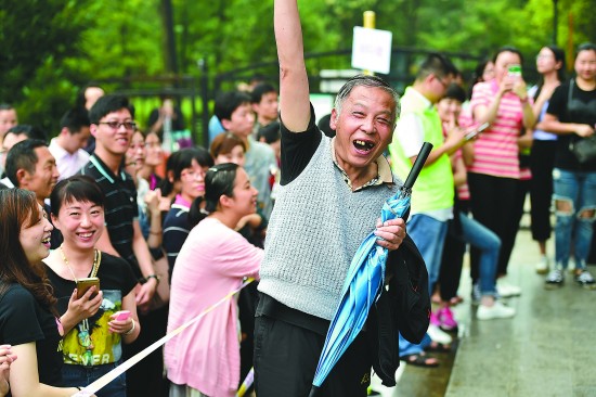 6月8日,一名幼兒家長在合肥森林海幼兒園的抽簽搖號(hào)中簽后歡呼。