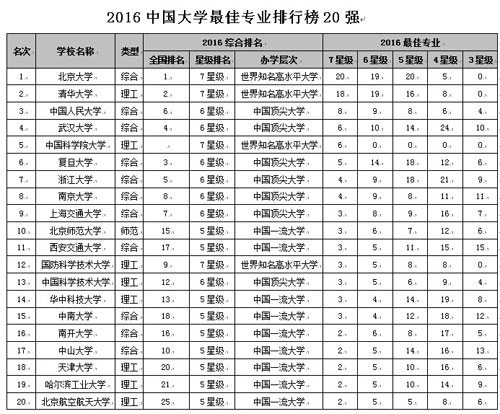 2016中國大學(xué)最佳專業(yè)排行榜北京大學(xué)居首