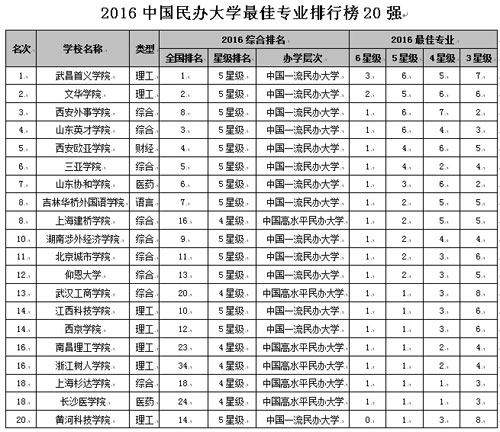 在最新2016中國各地區(qū)大學(xué)最佳專業(yè)排行榜中,北京市高校有74專業(yè)榮膺中國七星級專業(yè),蟬聯(lián)第1,上海列第2,江蘇居第3,湖北列第4,湖南居第5。在2016中國民辦大學(xué)最佳專業(yè)排行榜中,武昌首義學(xué)院、文華學(xué)院、西安外事學(xué)院、山東英才學(xué)院和西安歐亞學(xué)院名列前5強。在2016中國獨立學(xué)院最佳專業(yè)排行榜中,吉林大學(xué)珠海學(xué)院、四川大學(xué)錦江學(xué)院、北京師范大學(xué)珠海分校、河南理工大學(xué)萬方科技學(xué)院和云南師范大學(xué)商學(xué)院名列前5強。