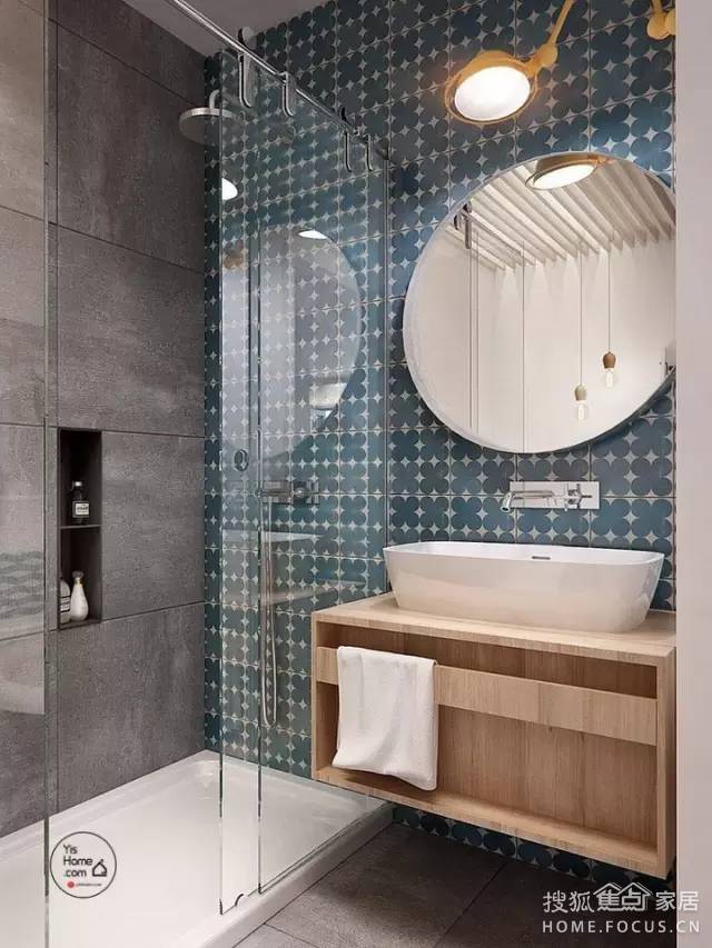 ▲ 補(bǔ)救妙招:后期多設(shè)光源,比如浴柜的鏡前燈。有的鏡前燈是自帶電源的,十分方便,或者直接安一個(gè)臺燈固定在墻面上,款式、顏色最好還是和衛(wèi)生間的風(fēng)格保持一致。也可將浴霸燈泡換成節(jié)能燈管。