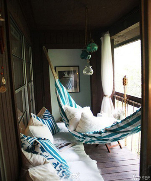 在陽(yáng)臺(tái)上掛上一張吊床,不管周末是暖洋洋還是陰雨綿綿,蕩悠在自家的陽(yáng)臺(tái)上,聽(tīng)自然的聲音。