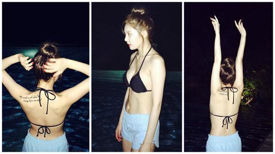 23歲的泫雅昨天看起來似乎是在戶外泳池戲水,她po出3張上半身穿著黑色比基尼、下半身套上藍(lán)色短褲的照片,還寫道:“度過一段美好的時光,好開心?!闭掌械乃裏o論是側(cè)面或背影,身材都完美得無懈可擊,難怪吸引逾11萬粉絲按贊。