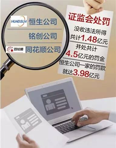 根據(jù)公告,恒生、銘創(chuàng)、同花順等3公司,因涉嫌非法經(jīng)營證券業(yè)務(wù),獲取非法收益,嚴(yán)重擾亂證券市場秩序。證監(jiān)會依法沒收涉事3公司違法所得達(dá)1.5億元,處罰金共計近4.5億元,并對相關(guān)責(zé)任人員給予警告和罰款。消息一出,有媒體將之稱為“最狠罰單”。