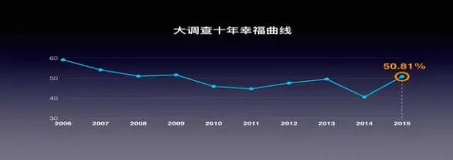 幸福感“V”型反轉(zhuǎn),超半數(shù)中國居民在2015年感覺生活幸福,達(dá)到五年來大調(diào)查發(fā)現(xiàn)居民幸福感近五年來最高點(diǎn)。