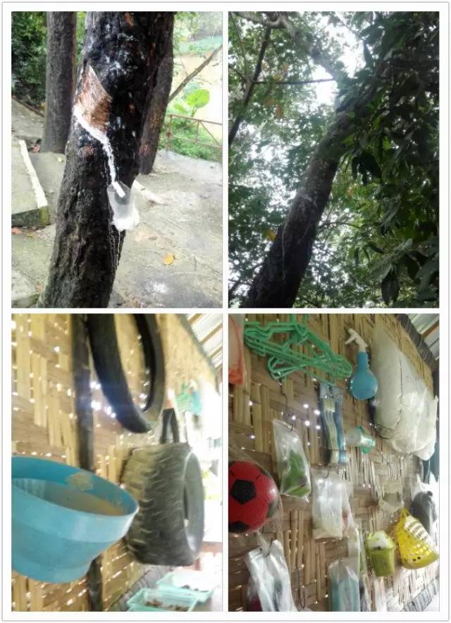 泰國從1991年起即成為世界最大的天然橡膠生產(chǎn)國和出口國。在這里隨處可見大片大片的橡膠園,據(jù)導(dǎo)游講,到了收獲季節(jié),天剛蒙蒙亮的時候,割膠工們便開始上山割膠了,太陽一出來,膠汁就不流了。膠林里萬籟寂靜,耳邊聽得嚓嚓的割膠聲,乳白的乳膠順著割線流進碗里。我們常說:“一分耕耘、一分收獲!”膠農(nóng)是真的的不容易??!