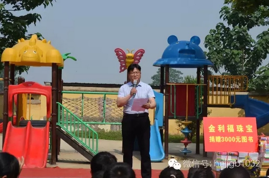 縣里領(lǐng)導(dǎo)和《知道不知道》主持人鵬哥紛紛上臺致辭,金利福珠寶和中鐵七局集團(tuán)電務(wù)工程有限公司也進(jìn)行了圖書的捐贈!