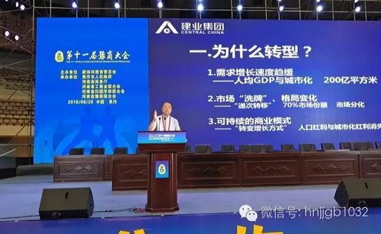 在主題論壇上,建業(yè)住宅集團(中國)有限公司董事局主席、嵩山資本創(chuàng)始人胡葆森以建業(yè)為例,談到河南房地產(chǎn)企業(yè)的轉(zhuǎn)型。他認(rèn)為,隨著人們需求增長速度的放緩以及市場的不斷分化,房地產(chǎn)市場也在進行著洗牌、競爭格局發(fā)生變化。
