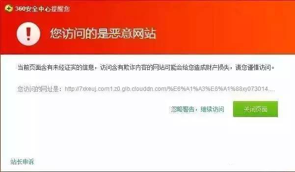 也有人根據(jù)截圖上的鏈接在電腦上打開(kāi),360提示為欺詐網(wǎng)站: