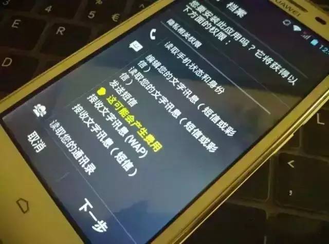 可以看到這個(gè)app偽裝的很好,名字就叫做“檔案”,細(xì)心的朋友會(huì)發(fā)現(xiàn),這個(gè)app還需要讀取手機(jī)身份以及短信甚至是通訊錄!一般的app都沒(méi)有這些權(quán)限需求的,顯然這是一個(gè)木馬病毒,記者就沒(méi)有繼續(xù)進(jìn)行下一步了。