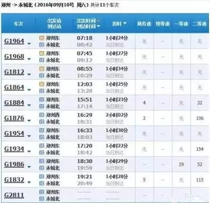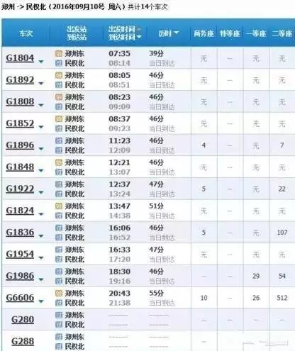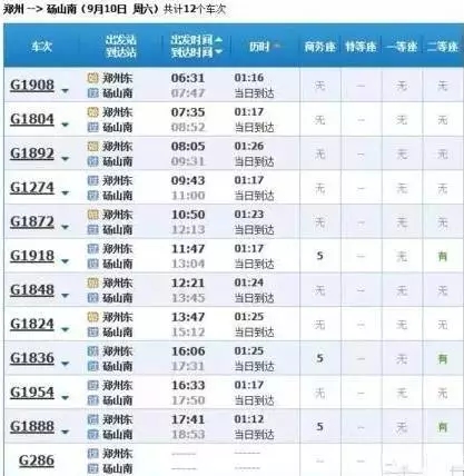 最快的一趟車G368/9,19點(diǎn)05分從上海虹橋始發(fā),23點(diǎn)02分到達(dá)鄭州東,耗時(shí)3小時(shí)57分,中途僅??磕暇┖托熘菡?,其余列車運(yùn)行時(shí)間都在4小時(shí)到5小時(shí)之間。