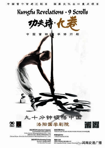 《功夫詩(shī) 九卷》是一部將功夫演化成詩(shī)、將攻擊性轉(zhuǎn)化成創(chuàng)造性的藝術(shù)功夫劇。它將中國(guó)傳統(tǒng)功夫與世界藝術(shù)元素相融合,以全新的舞臺(tái)語(yǔ)匯和自成體系的表現(xiàn)手法,讓觀(guān)眾既在藝術(shù)的美輪美奐中,又在舒放的意境空間里,感悟中國(guó)優(yōu)秀傳統(tǒng)文化的思想精髓,接受中國(guó)傳統(tǒng)價(jià)值觀(guān)的洗禮。它是目前全球功夫舞臺(tái)上最純粹、最藝術(shù)、最文化的高端功夫詩(shī)劇。