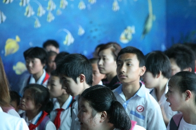 這批特殊孩子都是鄭州市二七區(qū)輔讀學(xué)校的在校學(xué)生,能夠在2012年六一兒童節(jié)來(lái)臨之際前往海洋館游玩,是大家多年以來(lái)的共同愿望。在三個(gè)多小時(shí)的時(shí)間里,信息廣播的編輯、記者、主持人領(lǐng)著智障、自閉癥兒童參觀了各個(gè)館舍。海豚館表演結(jié)束后,工作人員破例讓部分自閉癥孩子近距離與海豚接觸。由于海豚能發(fā)出多種波長(zhǎng)的高頻超聲波(200至350千赫),對(duì)人的中樞神經(jīng)有激活作用,對(duì)自閉癥患兒有一定療效,孩子們臉上都露出燦爛的笑容,很多孩子都流下了激動(dòng)的淚水。