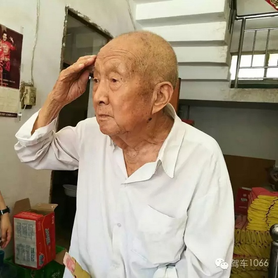 老兵聽不到我們?cè)谡f什么,今年98了。