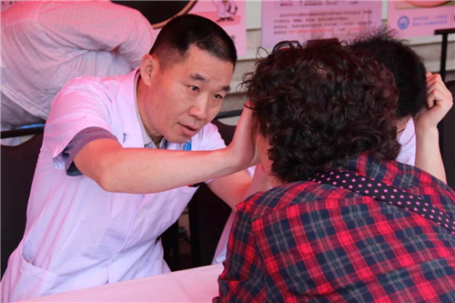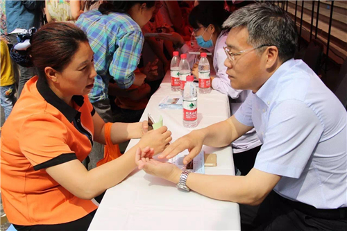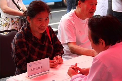 下了直播車后,孫院長又來到義診區(qū),親自為患者診治病情。