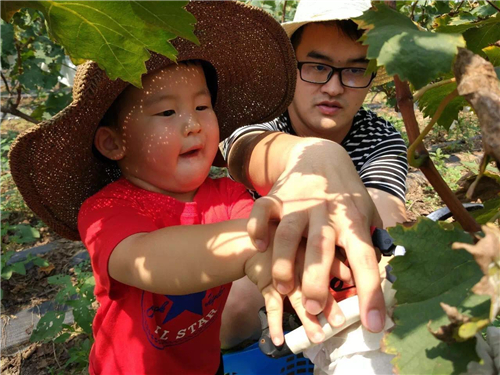 難得的親子互動(dòng)機(jī)會(huì),不僅能讓寶貝了解葡萄是如何生長(zhǎng)和采摘的,還能和寶貝來次親密互動(dòng)~