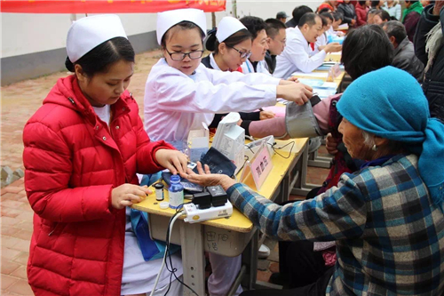 雖然廣場上寒意襲人,但大家的內心卻熱情高漲,現(xiàn)場的專家為老鄉(xiāng)免費測血糖、量血壓、發(fā)放健康教育資料,免費提供疾病知識的咨詢,忙得不亦樂乎。