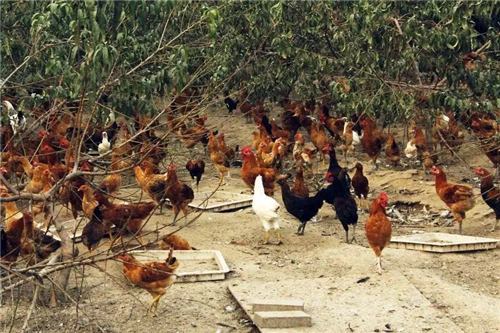盡管上串下跳的柴雞和甘蔗林不能和睦相處,但是和桃樹林還是很搭,柴雞們經(jīng)常會臥到桃樹上休息。