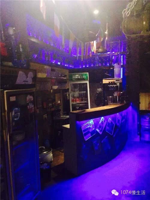 店內(nèi)的裝修風(fēng)格就有點(diǎn)搖滾重金屬的意思,果然,夜幕降臨,燈光一開(kāi),立馬就有酒吧的氛圍了。