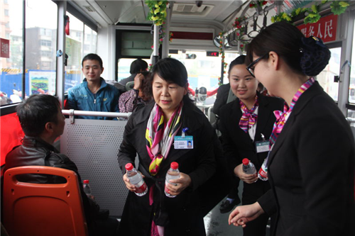 隨車服務(wù)人員贈水給乘客,小小一瓶水讓歸家路更舒心