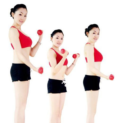 動(dòng)作要領(lǐng):收腹、挺胸、沉肩、膝蓋微曲,雙手握啞鈴。大臂夾緊身體,保持不動(dòng),小臂抬起,與大臂成30°,保持30秒后,落下小臂,使小臂與身體成30°,再保持30秒。每組動(dòng)作重復(fù)20次以上,每回至少做4組,每組之間要有間隙。
