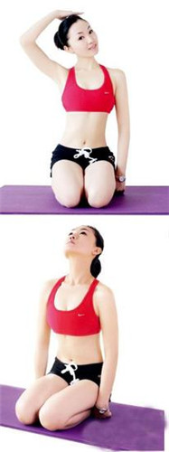 動(dòng)作要領(lǐng):頭部向左拉伸時(shí),用左手扶頭右側(cè);頭部向右拉伸時(shí),用右手扶頭左側(cè)。每個(gè)動(dòng)作保持30秒,前15秒順向拉伸,后15秒對(duì)抗拉伸。頭部向后拉伸時(shí),慢慢向后抬到最高處,感覺(jué)頸部完全拉伸保持30秒,返回至初始位置。每個(gè)動(dòng)作各做5次,做2~3組進(jìn)行一次頭部的正向和逆向旋轉(zhuǎn)。每回至少做5組,每組之間要有間隙。小貼士:注意手部力量不要過(guò)大,輕輕按壓。頸部不要松懈,要有力量支撐。
