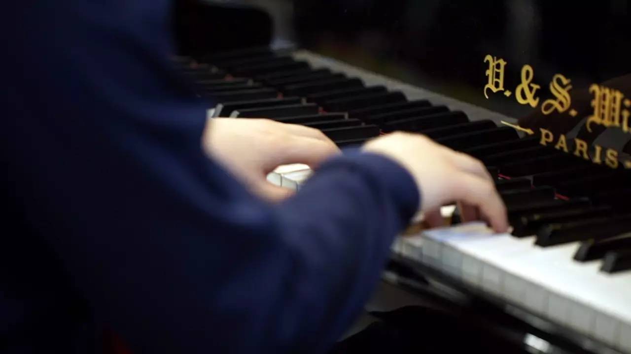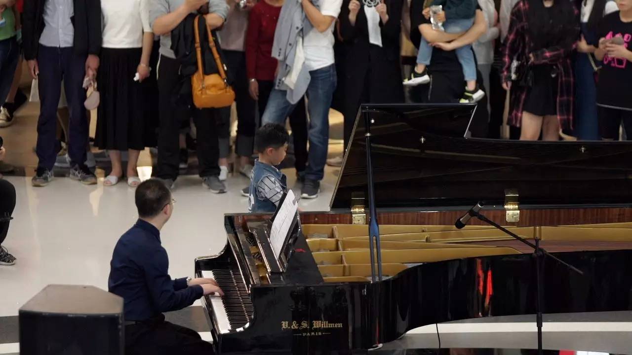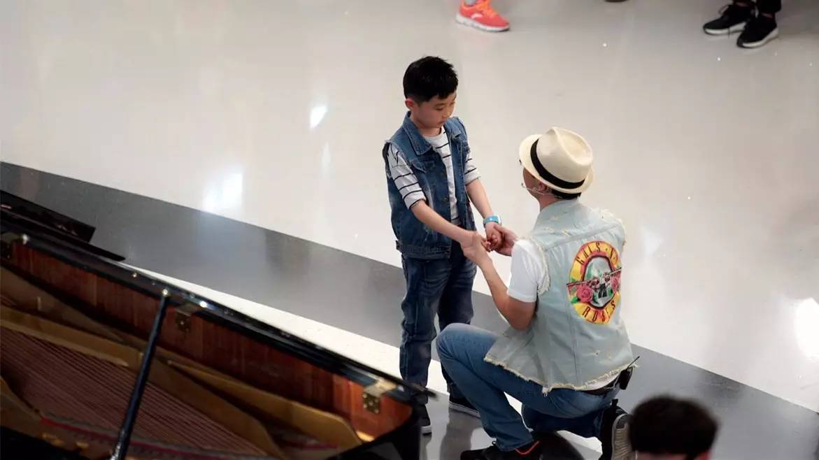 看著孩子還是不說話,旁邊的鋼琴師就在這時,彈奏了起來……