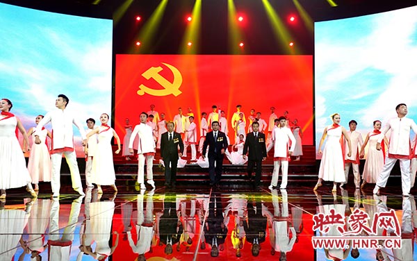 演出伊始,今年當(dāng)選河南省出席黨的十九大代表的三位勞模——信陽市潢川縣駐鄭州農(nóng)民工黨支部書記黃久生、中國平煤神馬集團(tuán)十三礦掘進(jìn)二隊(duì)隊(duì)長王羊娃、中信重工機(jī)械股份有限公司重型裝備廠大班長劉新安邁著堅(jiān)定的步伐走上舞臺,抒發(fā)對黨的滿腔深情,表達(dá)了全省職工喜迎黨的十九大、立足崗位建功立業(yè)的決心。