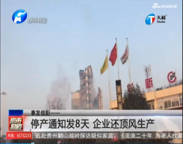 映象網(wǎng)訊(記者 柴可)據(jù)河南廣播電視臺都市頻道報道,12月1日,河南省環(huán)境污染防治攻堅(jiān)戰(zhàn)小組發(fā)放通知,要求我省所有水泥企業(yè)停產(chǎn),可是通知已發(fā)放8天了,華新水泥河南信陽有限公司(以下簡稱華新水泥),依然頂風(fēng)生產(chǎn),每天生產(chǎn)5000多噸水泥,燃燒生活垃圾六七百噸,污染還在繼續(xù)。此前,該企業(yè)曾因排污問題,被媒體曝光。