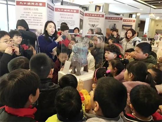 河南博物院講解員為小朋友們講解國寶“婦好鸮尊”