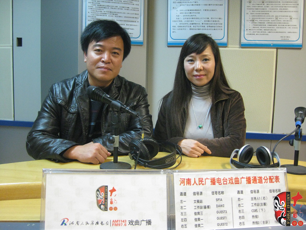 左起:河南虎美玲藝術學校主任張曉勝、校長張茵音,著名戲曲節(jié)目主持人、河南電臺戲曲廣播當家小生月陽