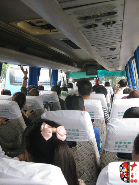 坐了一天一夜的火車 終于來到成都 早已經(jīng)有兩輛大巴車等著大家了