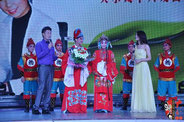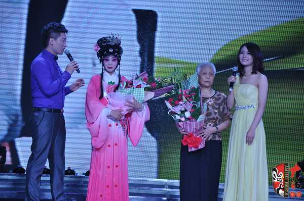在6月16日舉辦的關(guān)小鳳個(gè)人戲曲專場(chǎng)中,關(guān)小鳳之女、24歲的張聰表演了豫劇《情斷狀元樓》“打神告廟”及《抬花轎》的“坐轎”兩折戲。畢業(yè)于河南省藝校的張聰現(xiàn)場(chǎng)表演稍顯稚嫩,但也獲得了觀眾的熱情鼓勵(lì)。張聰在接受記者采訪時(shí)說(shuō),自己戲校畢業(yè)之后到了福建省一閩劇團(tuán)工作,已經(jīng)有五、六年未接觸豫劇了。媽媽歷經(jīng)艱辛把自己帶大,特別不容易,這次為了支持媽媽的專場(chǎng)演出,她專程回河南、花十天時(shí)間趕排了兩折戲……在張聰表演完《抬花轎》的“坐轎”一折,一位身穿狀元紅袍、手捧鮮花、操南方口音的英俊小伙上臺(tái)向“周鳳蓮”求婚,經(jīng)張聰介紹,觀眾才豁然明白,英俊小伙乃她的老公,結(jié)婚時(shí),媽媽關(guān)小鳳因?yàn)槊τ诠ぷ魑茨軈⒓?,借此現(xiàn)場(chǎng)要補(bǔ)行跪拜大禮,以感謝母親的養(yǎng)育之恩。此情此景,讓現(xiàn)場(chǎng)不少觀眾為之動(dòng)容。
