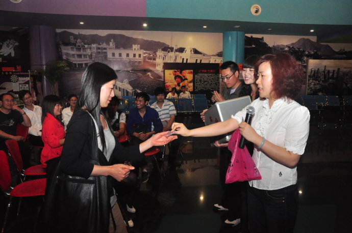 2010年5月8日上午10點(diǎn),河南電臺(tái)旅游廣播FM99.9《故事大秀場(chǎng)》聽友觀影團(tuán),在鄭州百盛6樓的鄭州橫店影視電影城如期舉行。美女主持小佩、菲楊聯(lián)袂登場(chǎng),與聽眾朋友精彩互動(dòng),現(xiàn)場(chǎng)有獎(jiǎng)問(wèn)答,鄭州橫店影視電影城也送出了各種精美禮品!互動(dòng)期間來(lái)自安陽(yáng)的聽眾非常的幸運(yùn),獲得了本次活動(dòng)的大獎(jiǎng),一等獎(jiǎng):精美的純銀情侶對(duì)戒;還有2張價(jià)值45元的橫店影城貴賓券!大家?guī)е约旱亩Y物和歡聲笑語(yǔ),與小佩、菲楊一起在位于鄭州百盛廣場(chǎng)六樓的橫店影城電影城觀看了催淚大片《歲月神偷》,這部影片感動(dòng)了在場(chǎng)的每一位觀眾。活動(dòng)最后,每位到場(chǎng)的幸運(yùn)聽眾還獲得了鄭州橫店影視電影城贈(zèng)送的寶龍新店“20元現(xiàn)金券”!參與活動(dòng)的所有聽眾都收獲豐厚,真的是滿載而歸呀!在此特別感謝鄭州橫店影視城對(duì)本次活動(dòng)的大力支持!故事大秀場(chǎng)我秀我飛揚(yáng)~~~