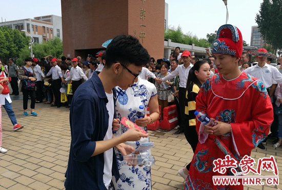 公交車長(zhǎng)身穿狀元服為考生送“紅包”、和水