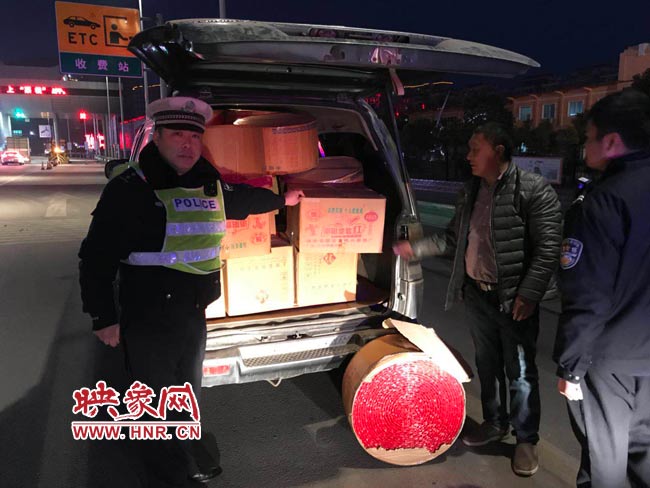 據(jù)駕駛員孟某交代,他駕車從商水八里灣走寧洛高速周口站上高速前去縣城送貨,車上共裝有42件煙花爆竹。