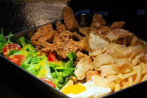 輕輕地咬上一口,裹在雞皮外面的脆皮恰到好處,薄薄的一層,咬一口,酥酥的,脆脆的,鮮美Q彈的雞肉在里面蠢蠢欲動,炸雞拼盤內(nèi)的超薄薯片,酥酥脆脆,甘愿發(fā)胖也停不下來的想要狂吃。