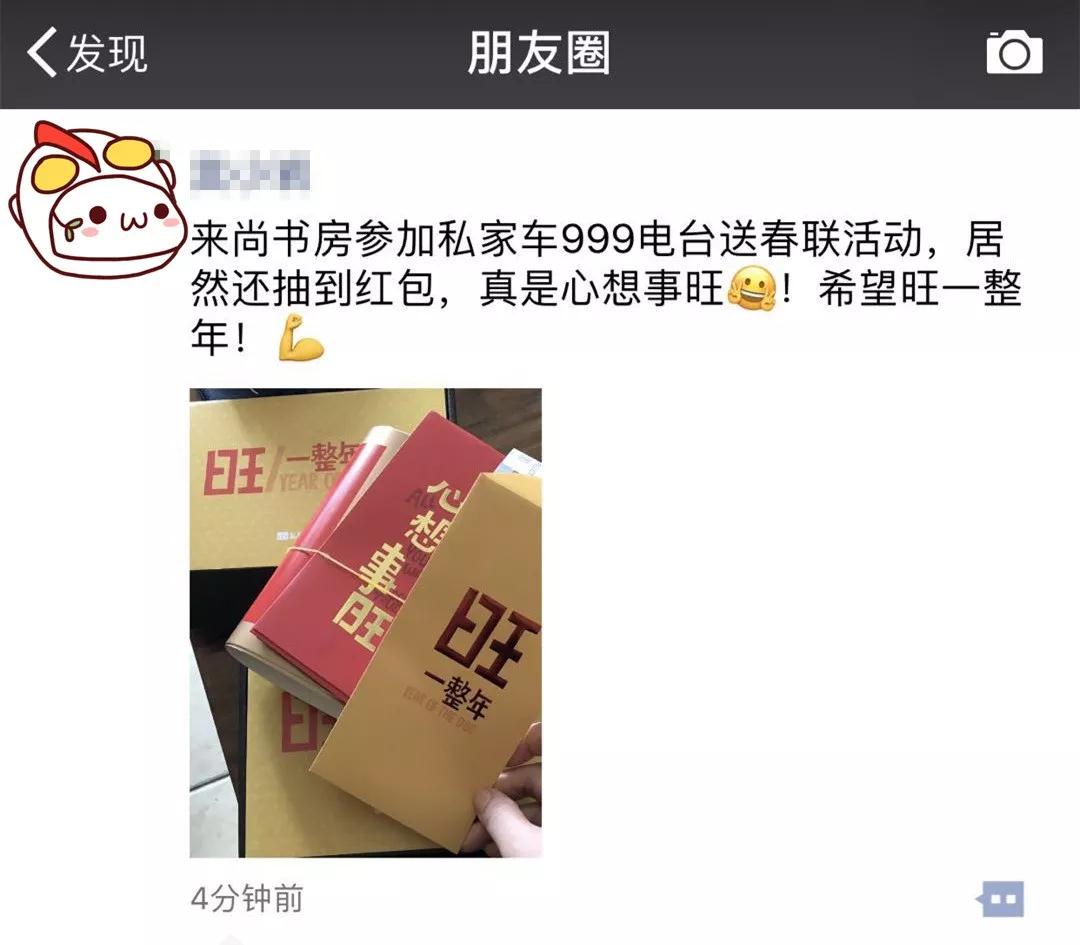 私家車999在尚書房尚書苑店及錦藝城店為大家免費發(fā)放春聯(lián)。向你送去新春的第一波祝福。