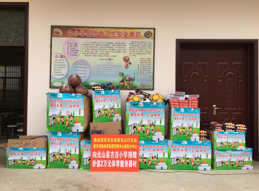 據(jù)信陽市人民政府和市體育局的相關(guān)工作要求和部署,借此機(jī)會進(jìn)一步提升體育彩票的公益品牌形象,作為本次活動的支持單位,信陽體彩分中心在啟動儀式結(jié)束后,在光山縣文殊鄉(xiāng)方洼小學(xué)舉行了“體育彩票 公益助學(xué)”體育器材捐贈儀式,國家、省、市的相關(guān)領(lǐng)導(dǎo)、奧運(yùn)冠軍一行20余人參加活動。簡短的捐贈儀式上,信陽體彩分中心向方洼小學(xué)捐贈體育器材,校方回贈錦旗,雙方還簽訂了器材接收和管理協(xié)議,相信這些體育器材一定能陪伴孩子們健康茁壯成長。