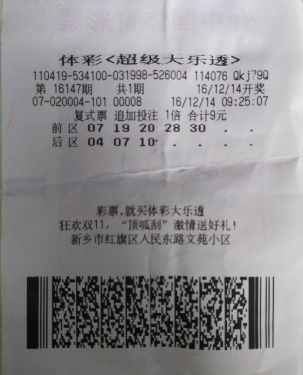 據(jù)尚先生介紹,他每次購買彩票都是自己根據(jù)走勢圖和感覺進行選號,復式投注是他的最愛。近期“大樂透”一等獎頻出,而復式投注命中一等獎的幾率更是非常高。尚先生說:“我每次購買‘大樂透’都不會忘記追加,追加投注帶來的獎金對于復式票是非??捎^的?!鄙邢壬ㄟ^復式追加票共獲得本期中獎獎金也達到了5萬多元。
