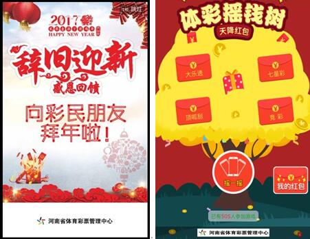 活動期間微信搜索“河南體彩”,先添加關(guān)注,再在對話框中回復(fù)關(guān)鍵字“搖錢”,即可按提示進(jìn)入游戲,搖動手機(jī)即有機(jī)會搖取“現(xiàn)金紅包”,先到先得,搶完為止。