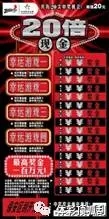 “20倍現(xiàn)金”單張彩票共有20次中獎(jiǎng)機(jī)會(huì),最高獎(jiǎng)金100萬(wàn)元。票面共有五組游戲,簡(jiǎn)單易玩、新鮮刺激。其中,主游戲?yàn)椋汗伍_(kāi)覆蓋膜,在任意一場(chǎng)游戲中,如果你的號(hào)碼與中獎(jiǎng)號(hào)碼相同,即中得該場(chǎng)游戲右方所示的金額;如果在任意一場(chǎng)游戲中,出現(xiàn)倍數(shù)標(biāo)志“2X,3X,5X,10X或20X”,即中得該場(chǎng)游戲右方所示金額乘以該場(chǎng)游戲所出現(xiàn)的倍數(shù)。其它四場(chǎng)幸運(yùn)游戲分別為:在幸運(yùn)游戲區(qū)刮開(kāi)覆蓋膜,如果出現(xiàn)兩個(gè)相同的標(biāo)志,分別可中得50元、100元、200元和500元。所有游戲中獎(jiǎng)獎(jiǎng)金兼中兼得。