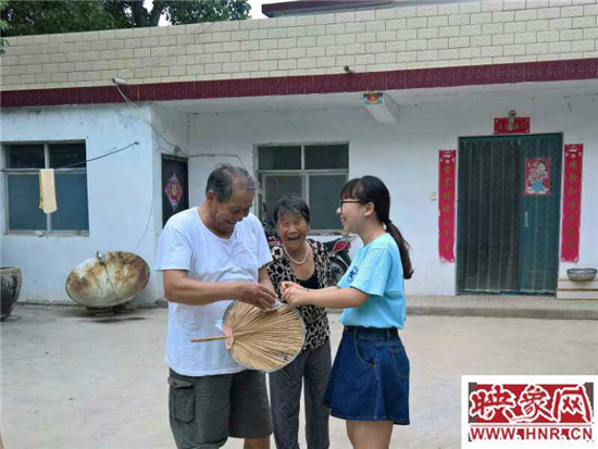 不多時,村委會的辦公室中就擠滿了聞訊而來的村民,志愿者們一一為他們測量血壓,不少村民離開前邀請志愿者們道“孩子,來俺家,給你們下碗好吃的撈面條”,更多的村民測完血壓后并未立即離去,而是留下與志愿者們親切交談,村民的質樸與志愿者的奉獻精神在這一間小小的辦公室中緩緩交融,在炎炎夏日里帶來些許清涼。