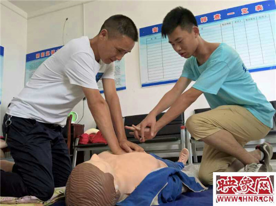 與此同時,地上擺放的人體模型引起了村民的極大興趣,他們在模型周圍坐成一圈,一邊觀察志愿者的演示一邊提問。部分村民還走上前來,在志愿者的指導下練習剛剛學到的心肺復蘇術。