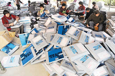 快遞公司員工在倉庫外就地將包裹掃描后裝車。阿里巴巴發(fā)布數(shù)據(jù)稱,淘寶網(wǎng)平均每分鐘售出4.8萬件商品。